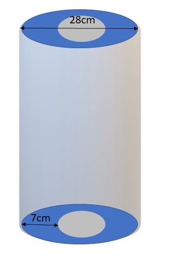 The volume of the tissue can be calculated by subtracting the volume of the tissue's hollow space, from the volume of the whole cylinder.