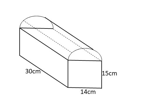 From the figure, we deduce that length = 30 cm, breadth = 14 cm and height = 15 cm.