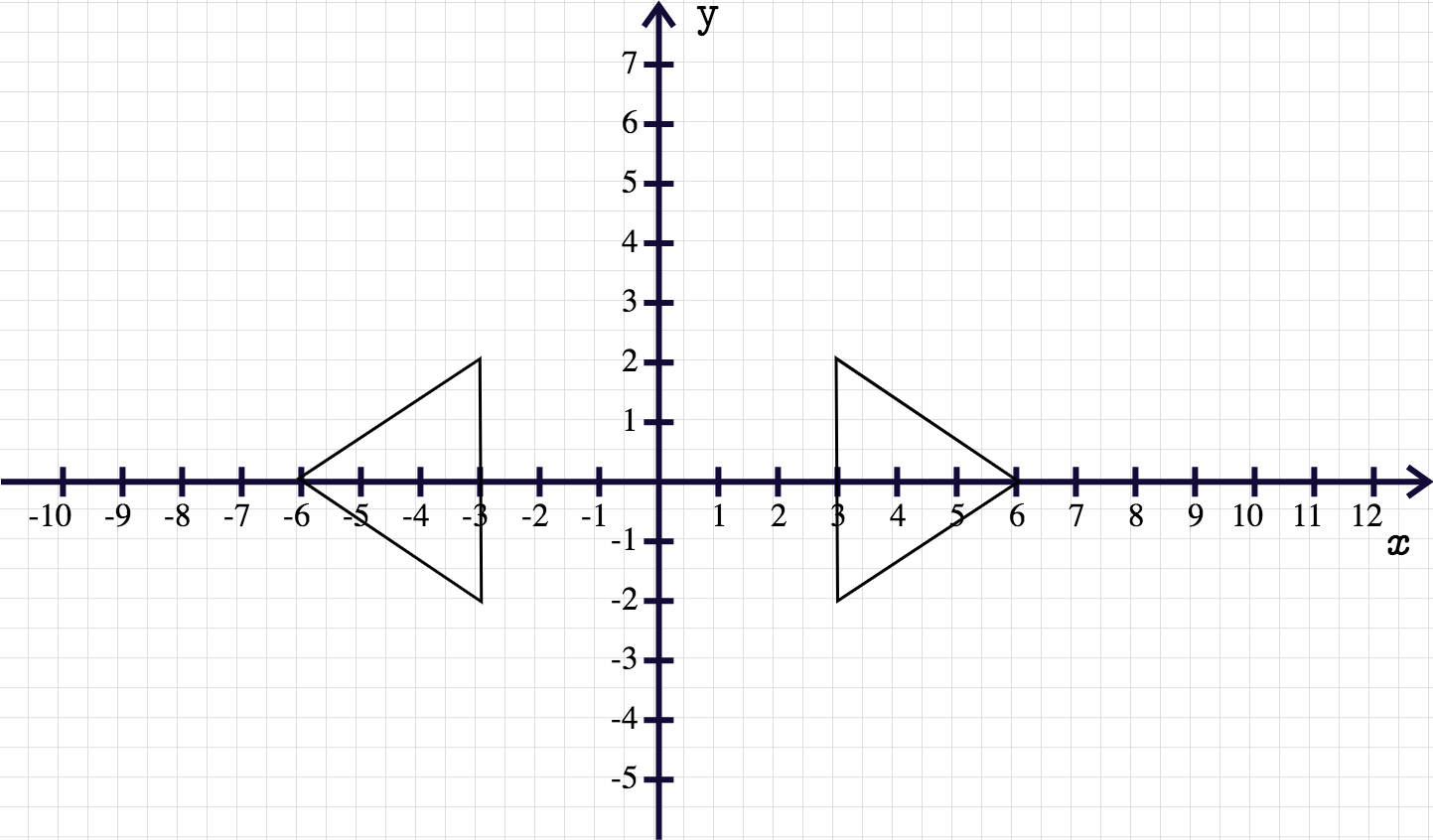In the image above, we can seeand. We will consider the first triangle the image of the second by applying a reflection over the y-axis.