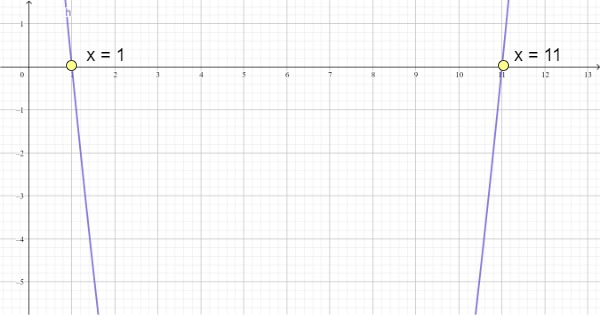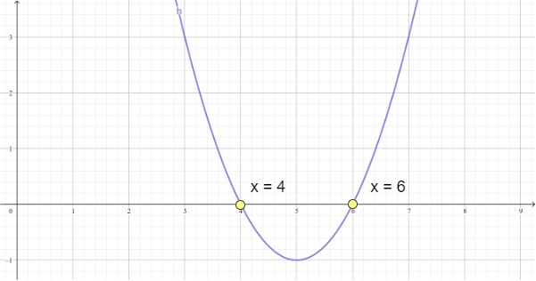 Thus, the two solutions are x = 4 and x = 6. The graph is shown below.
