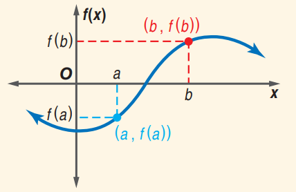 Suppose y = f(x) represents a quadratic function and a and b are two real numbers such that f(a) < 0 and f(b) > 0. Then f has at least one real zero between a and b.