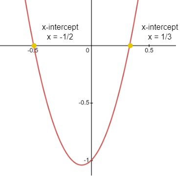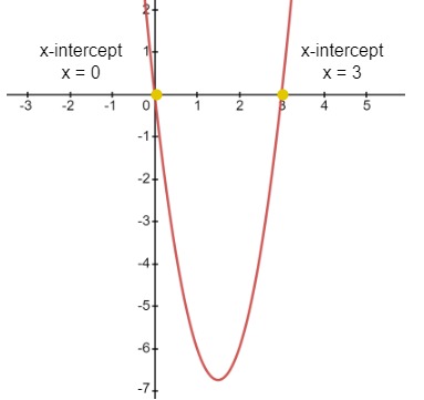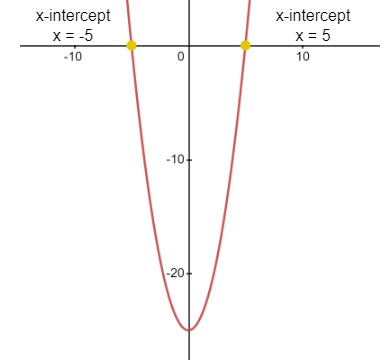 - The x-intercept is found by equating the quadratic function to zero, f(x) = 0