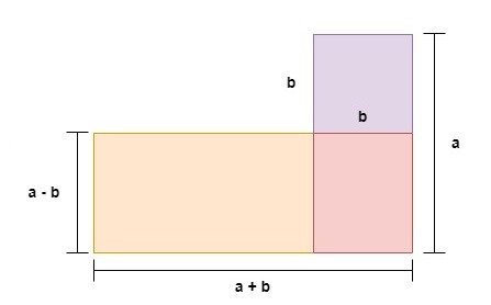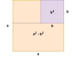 The same concept follows in the second case. In this case, we only want the area of the green square and the area of the red square which is . Here, we are essentially subtracting the area of the two identical orange rectangles from the area of the green and red squares as . Factorizing the left-hand side of this equation via grouping, we obtain