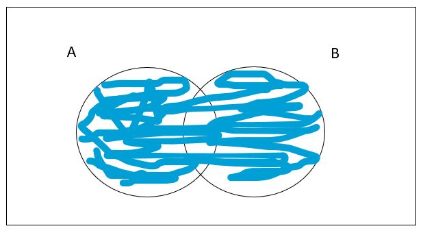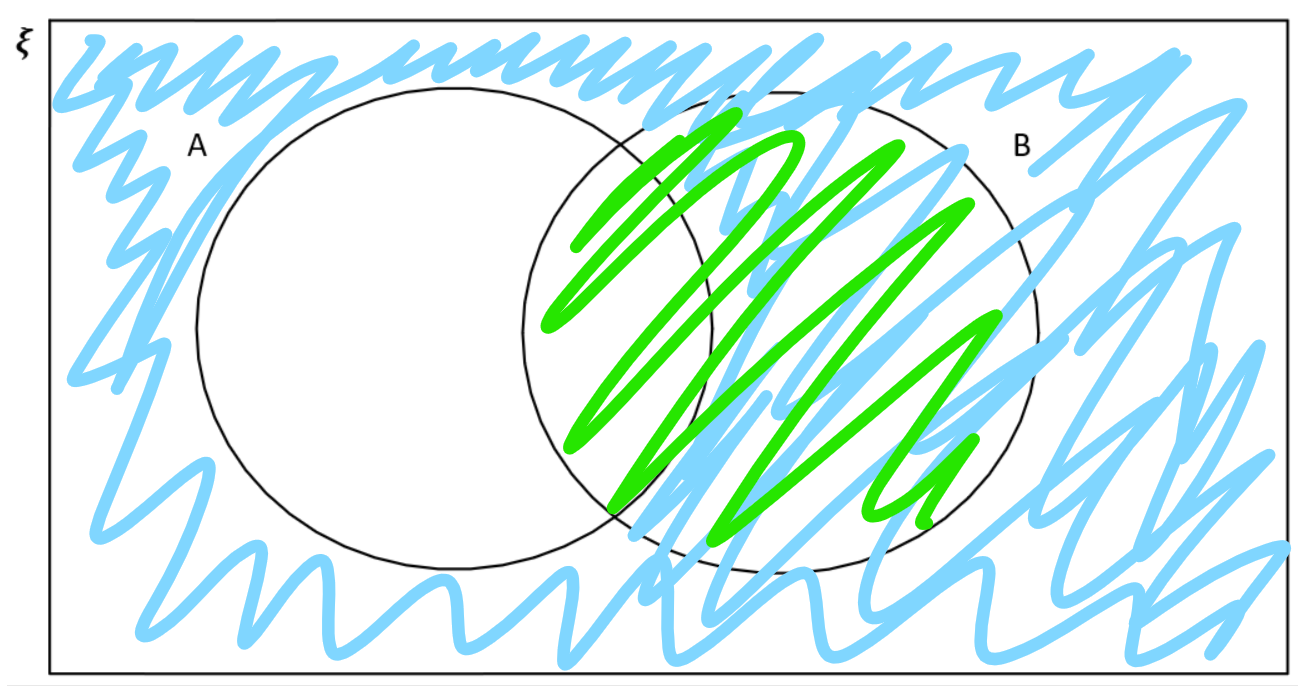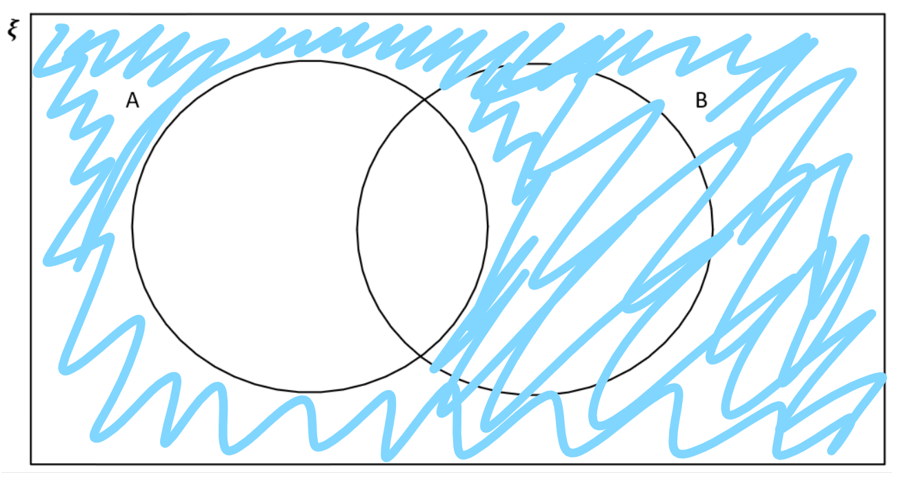 Again with A as above, we would interpret as ‘the set of people who don’t like rugby’. On a Venn diagram, this would look like this: